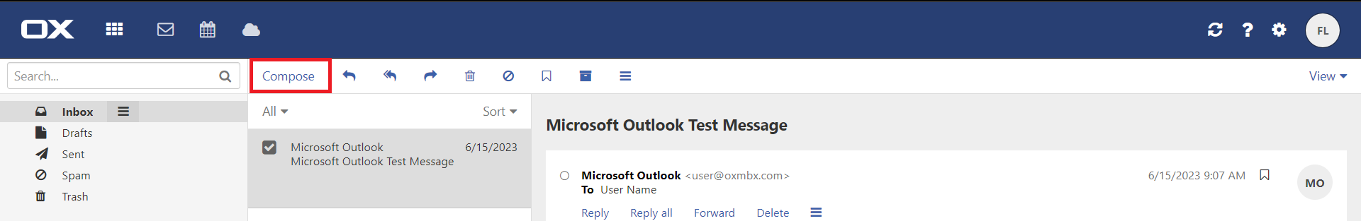 1. Login to your Open-Xchange webmail interface via a web browser.