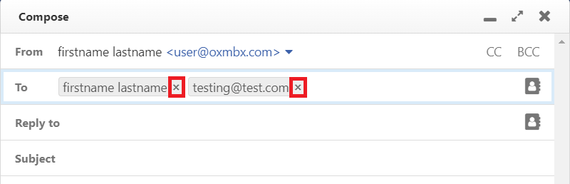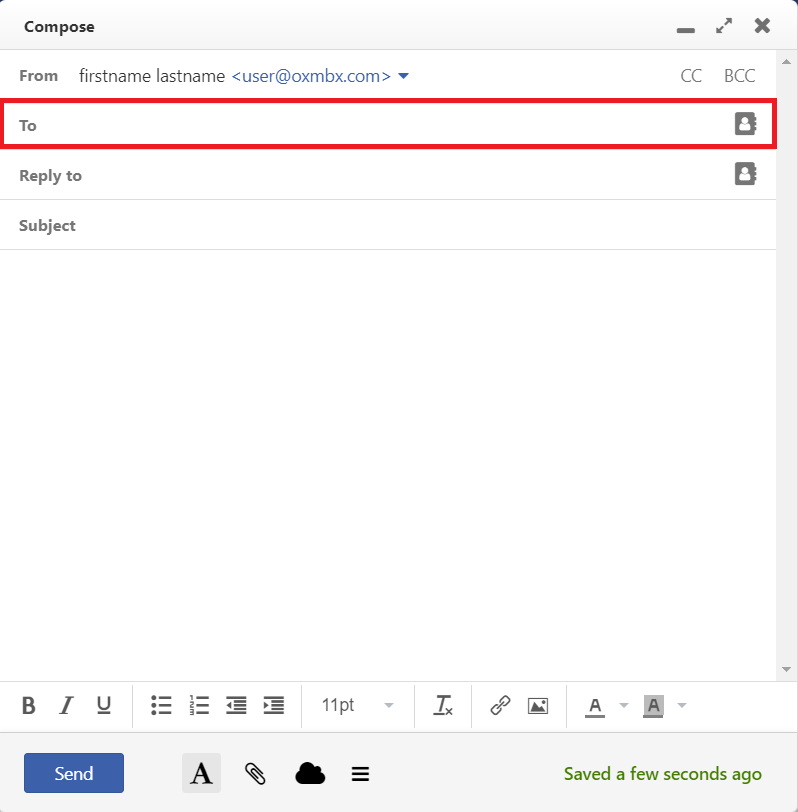 In order to hide the input fields, click on Copy (CC) to or on Blind copy (BCC) to. The addresses entered will be kept.