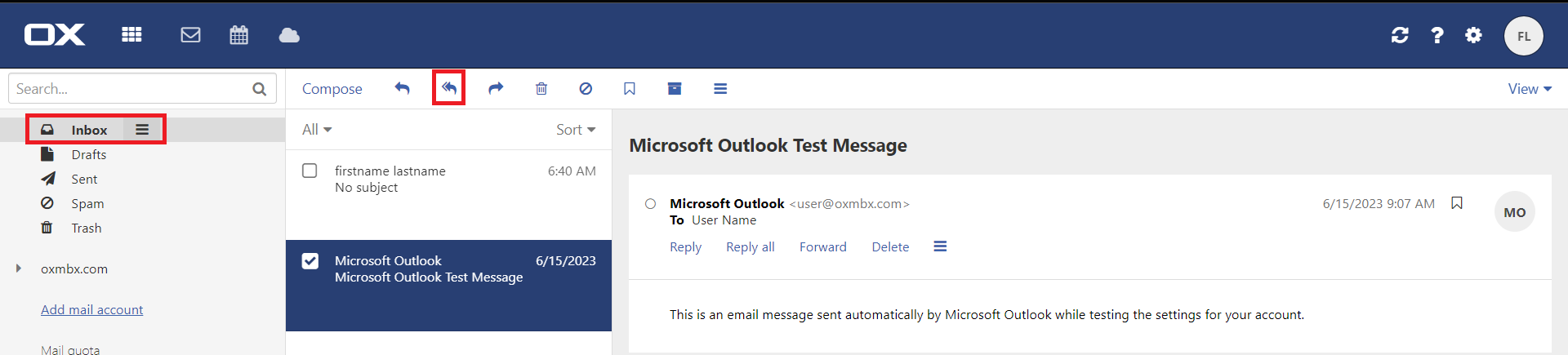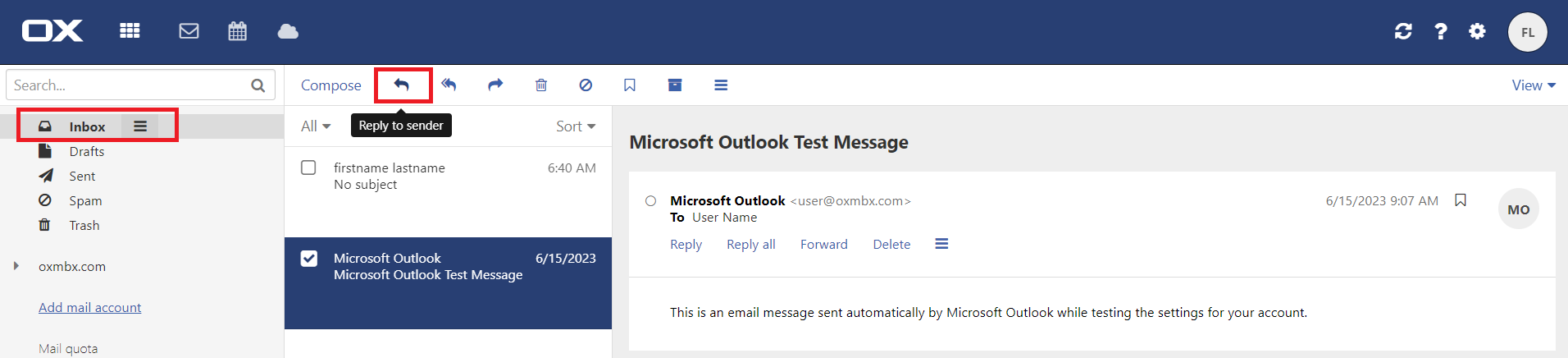 4. Click the Reply to sender icon in the toolbar.