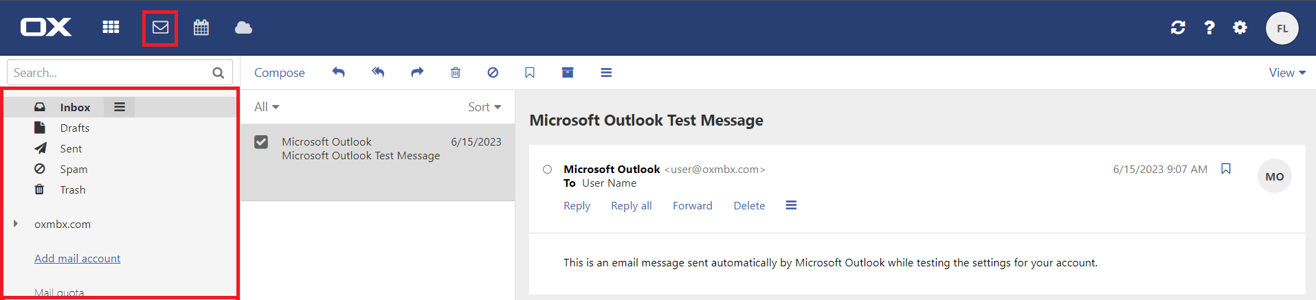 2. Open an E-Mail folder in the folder tree on the left-hand side.