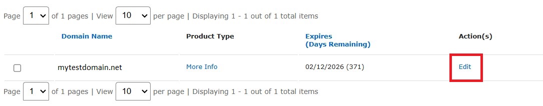 3. On the Domain Names page, click on the Edit link next to the domain name that you wish to unlock.