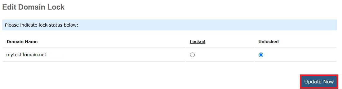 5. Check the appropriate circle for either Locked or Unlocked. Once done click Update Now.