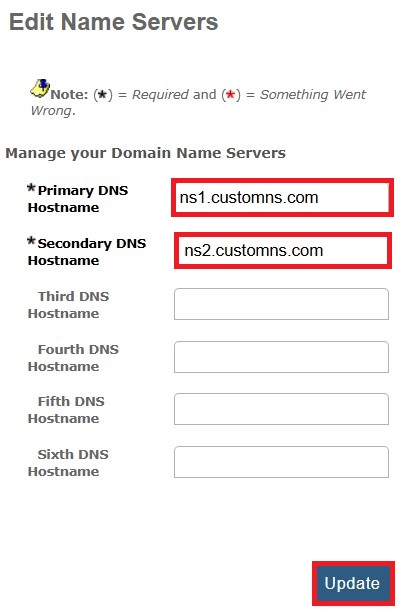 5. Enter your new Primary and Secondary DNS Hostname to set them as authoritative name servers.