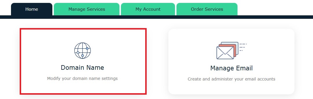 2. Click on the Domain Name menu visible on the Home page.